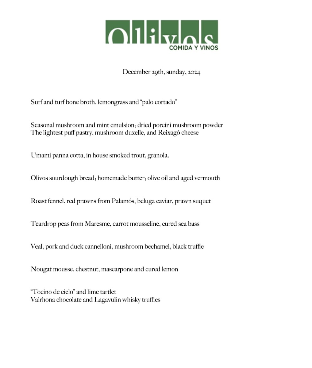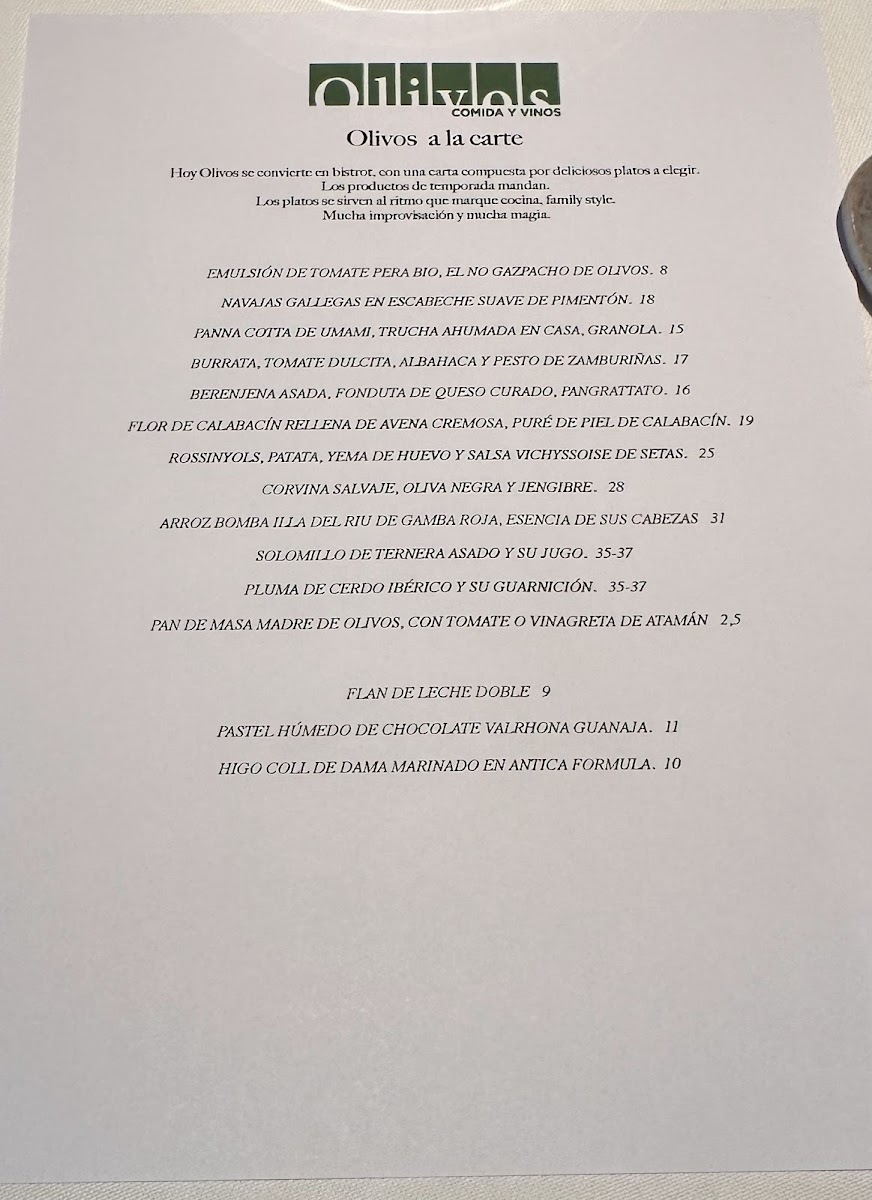 “ We recently had lunch at Olivos and I cannot think of enough superlatives to describe our experience (why this restaurant does not have a Michelin star is beyond me)! First, keep in mind this restaurant is open mostly for lunch (dinner Friday nights as well) and the format is tasting menu by reservation only. The space is small/intimate, the service by Maria very attentive and friendly and the chef’s magic behind the scenes far exceeded our expectations. Portion sizes were perfect and the recommended wines paired beautifully with the meal. We have had many tasting menus where typically some of the dishes are wonderful, others mediocre and a few disappointing. Not the case here where each of the courses was perfectly prepared, beautifully presented and absolutely delicious (no misses at all). If you are in the Barcelona area, I would strongly suggest making a reservation and getting ready for an amazing experience! ”